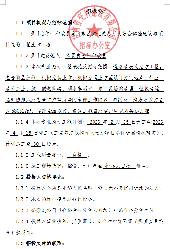 和政縣濱河?xùn)|區(qū)文化旅游開(kāi)發(fā)綜合體基礎(chǔ)設(shè)施項(xiàng)目道路工程土方工程招標(biāo)
