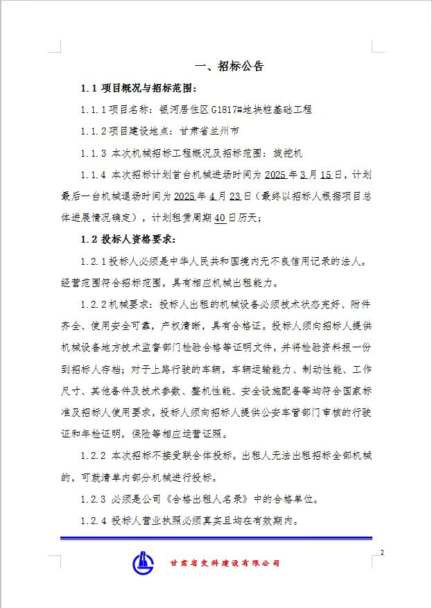 銀河居住區(qū)G1817#地塊樁基工程旋挖機(jī)招標(biāo)公告